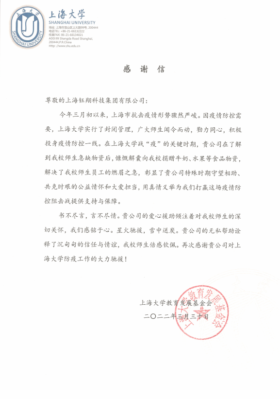 上海大學感謝信