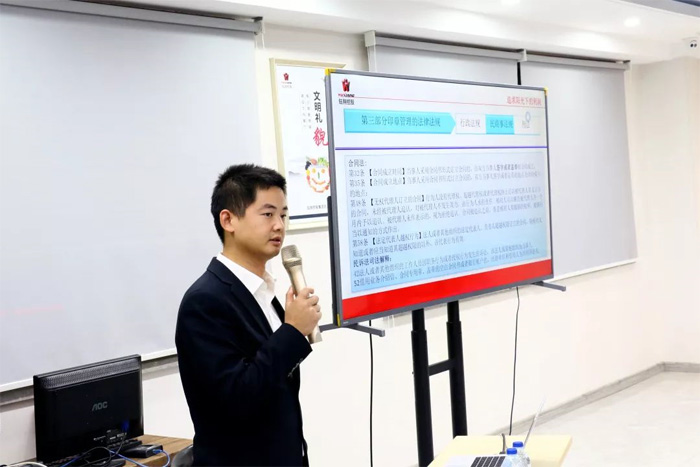 張士文律師講解了印章的定義、用途、分類、法律意義、印章涉及的法律法規等內容,重點通過集團日常業務中用到印章的場景,解答了常見的印章使用疑問,他要求大家要正確使用各種印章,杜絕法律風險。